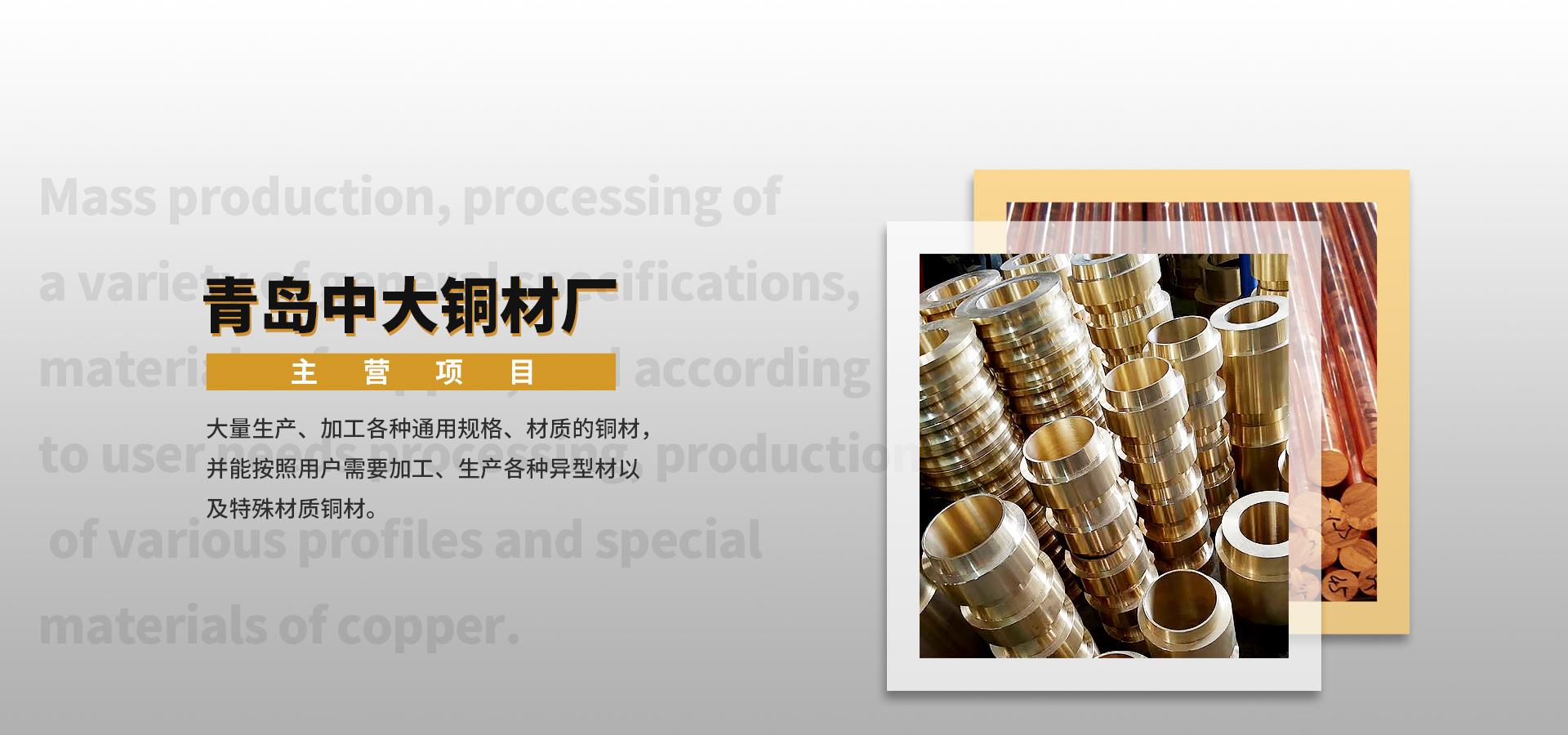 青岛中大铜材厂系山东省内一家专业铜材生产厂家,位于青岛即墨市城南,距青岛市区约四十公里,交通便利。本厂拥有一千多吨的铜型材挤压机、流水线及其配套设备;有着雄厚的技术力量、先进的生产工艺以及完善的检验、检测手段。本厂大量生产、加工各种通用规格、材质的铜材,包括紫铜管、紫铜板、青铜棒、青铜板、黄铜套、高硬度黄铜、铬锆铜板、铜锻件、锡青铜套、国标铜棒等,产品畅销全国,主要销往山东、江苏、广东、湖北、河北、河南、山西、上海等地。并且与省内多家兵工厂有着广泛的业务联系,反响良好。